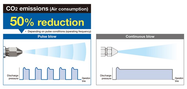 - Intermittent pulse blow improves removal efficiency by 35% compared with continuous blow. (Based on internal testing by SMC) [New]