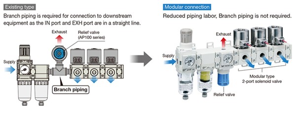 Releases pressure over the set range into the atmosphere and constantly maintains the pressure in a pipe – Reduced piping labor