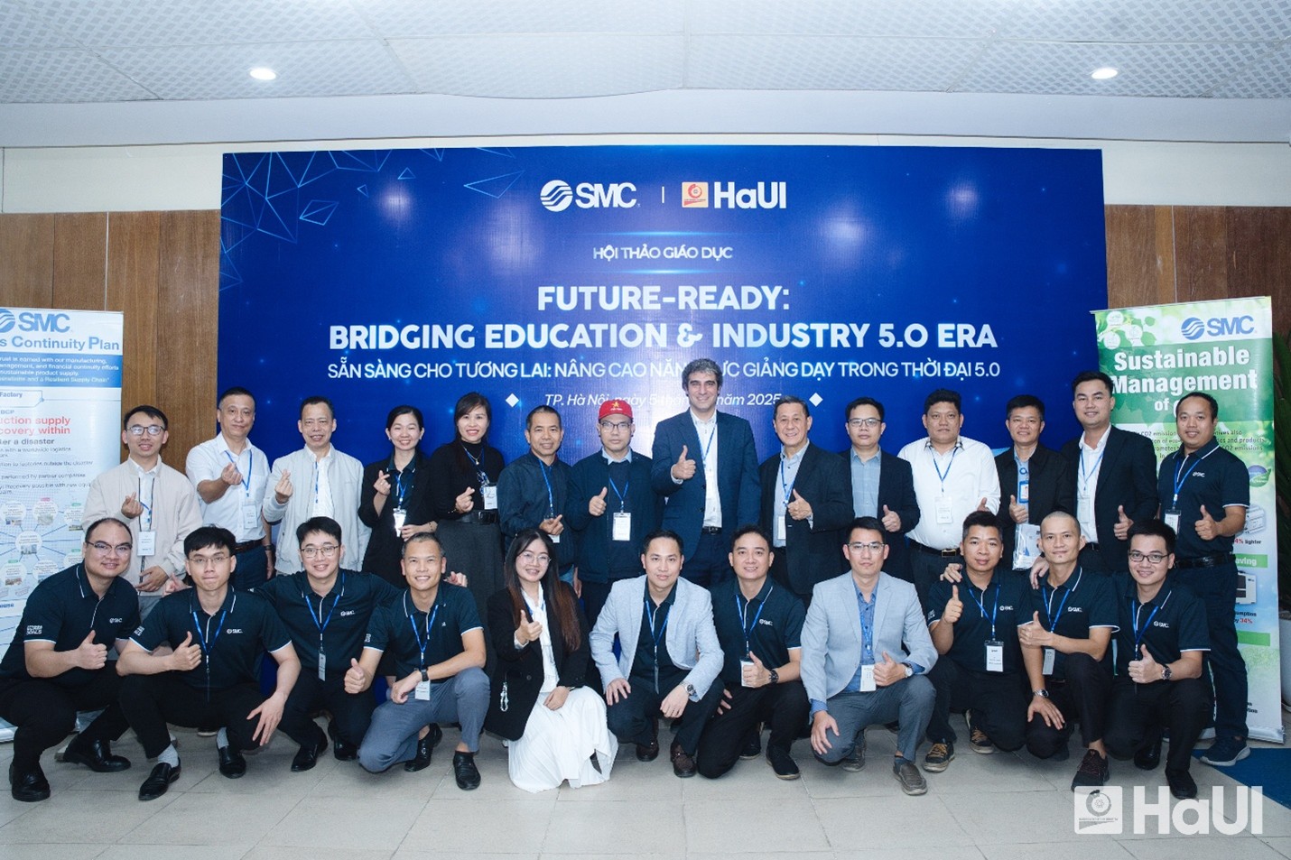 Vào ngày 5/12, SMC Corporation (Việt Nam) hân hạnh phối hợp cùng Đại học Công nghiệp Hà Nội (HaUI) tổ chức thành công hội thảo giáo dục với chủ đề “Sẵn sàng cho tương lai: Nâng cao năng lực giảng dạy trong thời đại 5.0”. Sự hiện diện và đóng góp của Quý Thầy cô và Quý Đối tác đã góp phần tạo nên một buổi thảo luận chuyên sâu, cởi mở và giàu giá trị thực tiễn về đào tạo kỹ thuật trong kỷ nguyên công nghiệp 5.0.