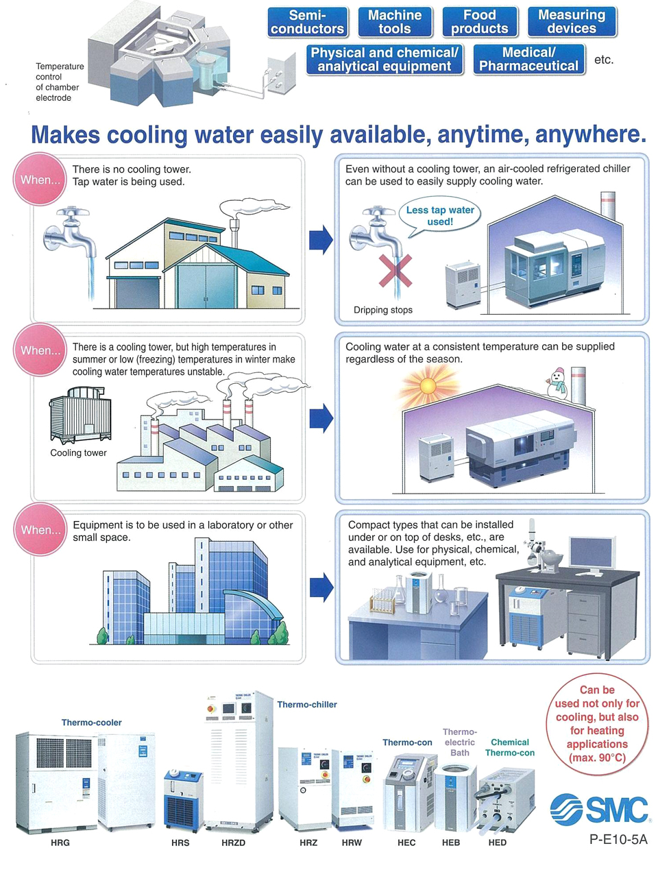 While the subsidiary mainly assembles knockdown cylinders, SMC Singapore also offers a wide range of high quality advanced industrial pneumatic products to meet applications in a myriad of sectors and fields of the market such as semiconductor, automotive, medical, and petrochemical, just to name a few. Products offered here range from actuators like electric actuator, pneumatic actuator and linear actuator, to valves like solenoid valve, pneumatic valve and flow control valve; from thermo equipment like thermo chiller and heat exchanger, to a variety of electrostatic discharge removal equipment.